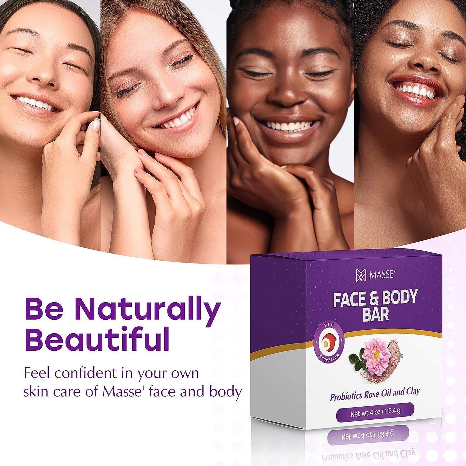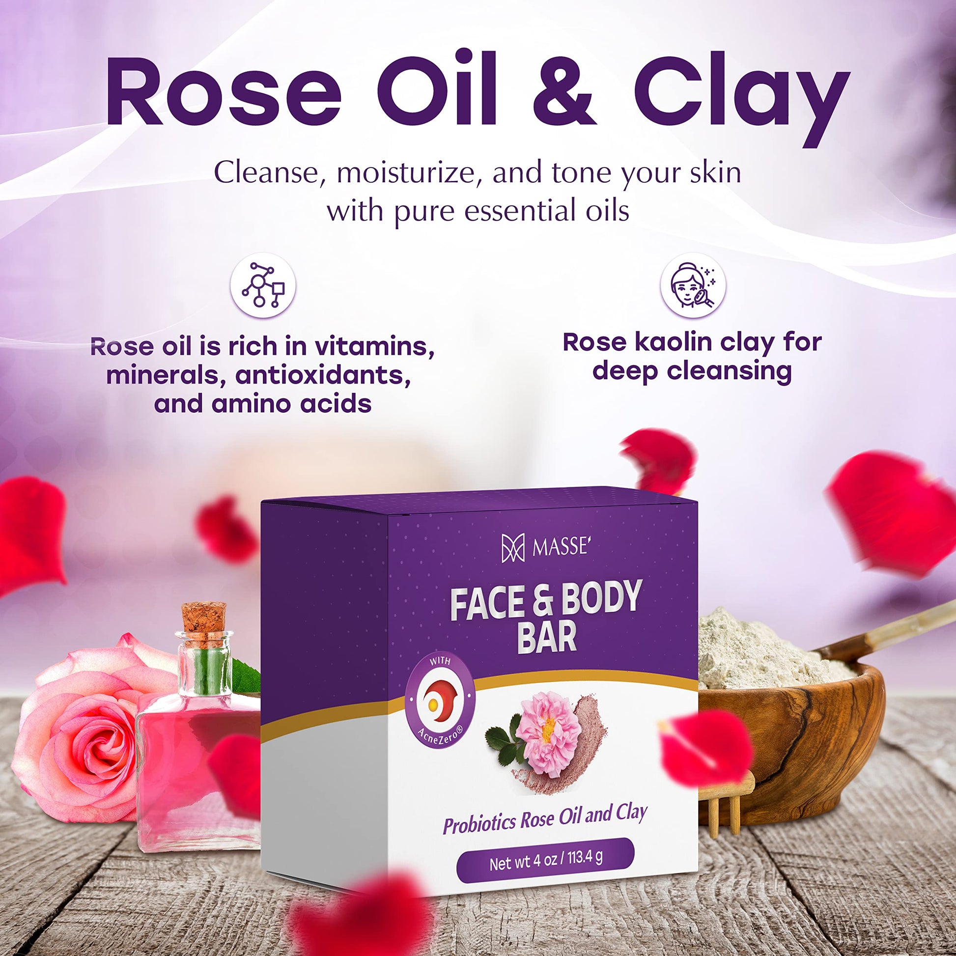 - Masse Probiotic Rose Oil & Clay Face & Body Bar is a transformative addition to your skincare regimen, crafted for both men & women seeking the perfect balance of nourishment & cleansing. Ideal for a gentle wash, luxurious bath, & thorough cleansing.